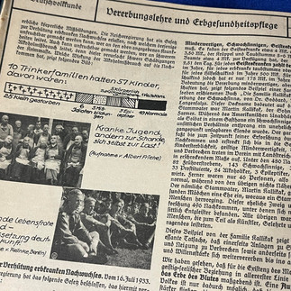 The school books feature a great deal of pre-war NSDAP propaganda and nationalist theory that was made part of the school curriculum. The focus included Germanic history and archaeology to back up future territorial claims, racial and genetic theories and justification for the eradication of anyone within society not productive or not deemed to be racially acceptable to the NSDAP.